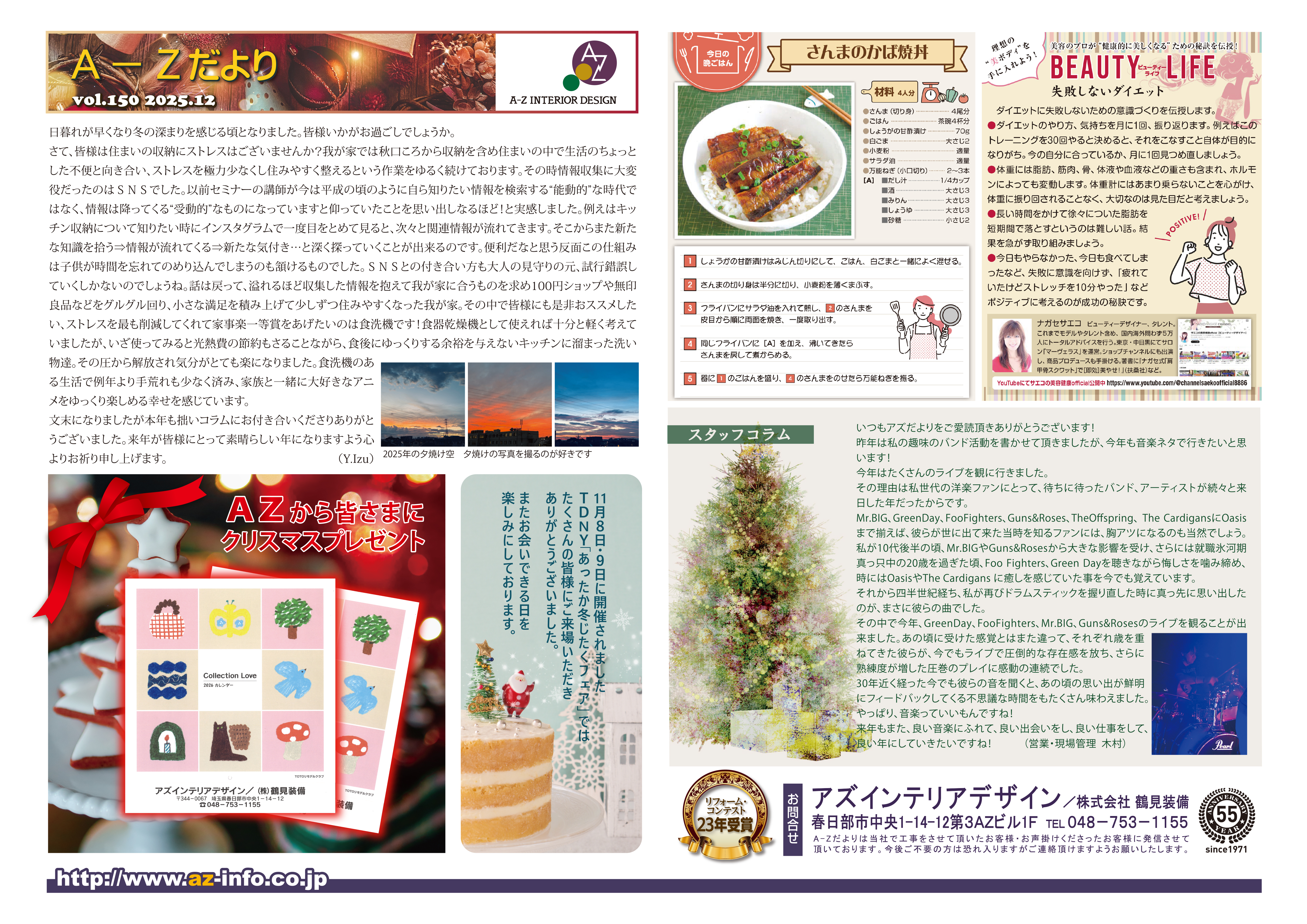 資料請求 HOMEA-ZだよりA-ZだよりA-Zだよりvol.150 2025.12 A-Zだよりvol.150 2025.12 A-Zだより一覧はこちら A-Zだより一覧はこちら COMPANY 会社案内代表挨拶会社概要企業理念アクセスマップ 私達の考える住まい創り スタッフ紹介 WORKS 施工事例一覧 戸建て 全面 LDK 水まわり 外まわり マンション 新築 店舗 医療・介護施設 受賞実績 VOICE お客様の声一覧 CONTENTS 施工の流れ A-Zだより 一覧 スタッフ募集 スタッフブログ 住宅省エネ2026キャンペーン 先進的窓リノベ2026事業 給湯省エネ2026事業 みらいエコ住宅2026事業 CONTACT お問い合わせ 資料請求