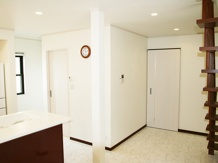 食品庫により部屋がスッキリ、広々としたLDKでご夫婦で過ごす時間が増えたそうです。