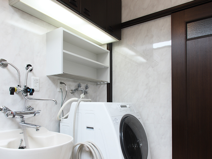 洗濯機置場は廊下側に移動。家事動線も向上。汚れ物を洗うのに便利なスロップシンクも備えています。