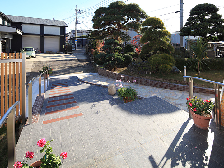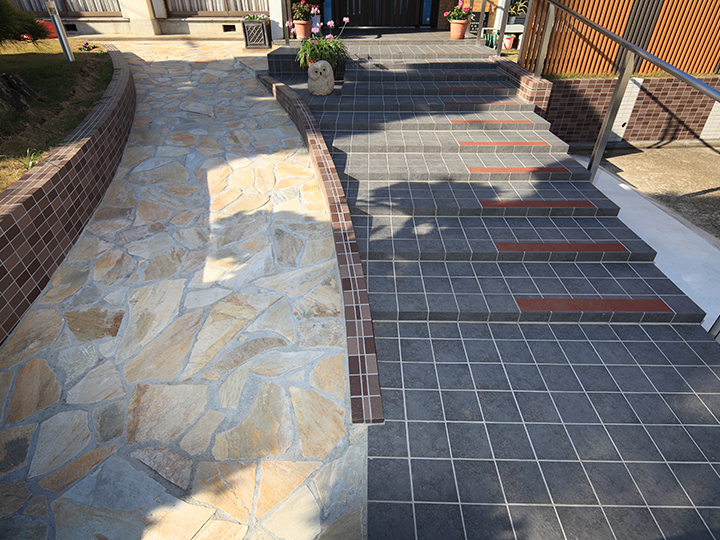 | ご提案内容 | 勾配を緩め、蹴上も低くした階段。 並行してスロープも設けました。 |