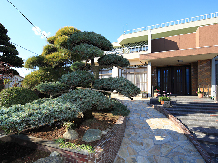 盆栽から成長した松の木が見事です。