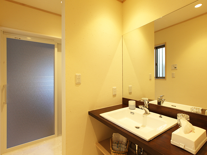 機能的で洗練された洗面台、スペースも広々。