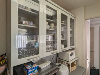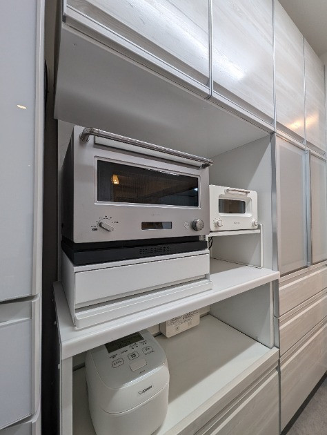 家電の置き方を工夫し、使いやすい高さの食器棚を設けた