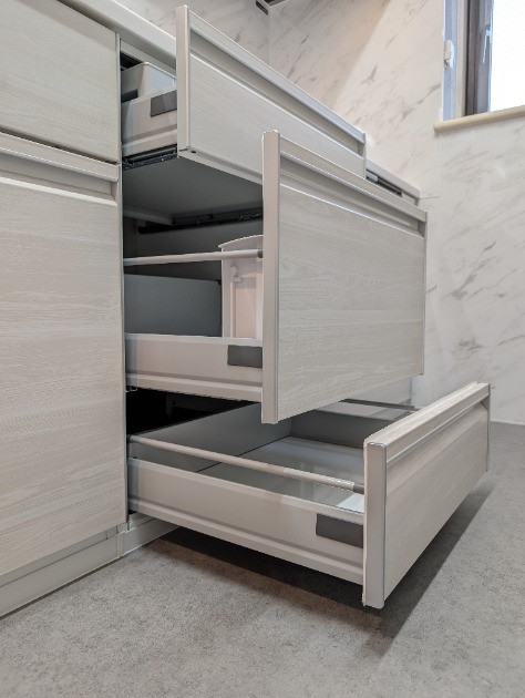 機能性・清掃性に優れ、使いやすくなったキッチン 引出し収納で奥の物もカンタンに取り出し キッチン内部(本体)もホーローなので劣化などに強い